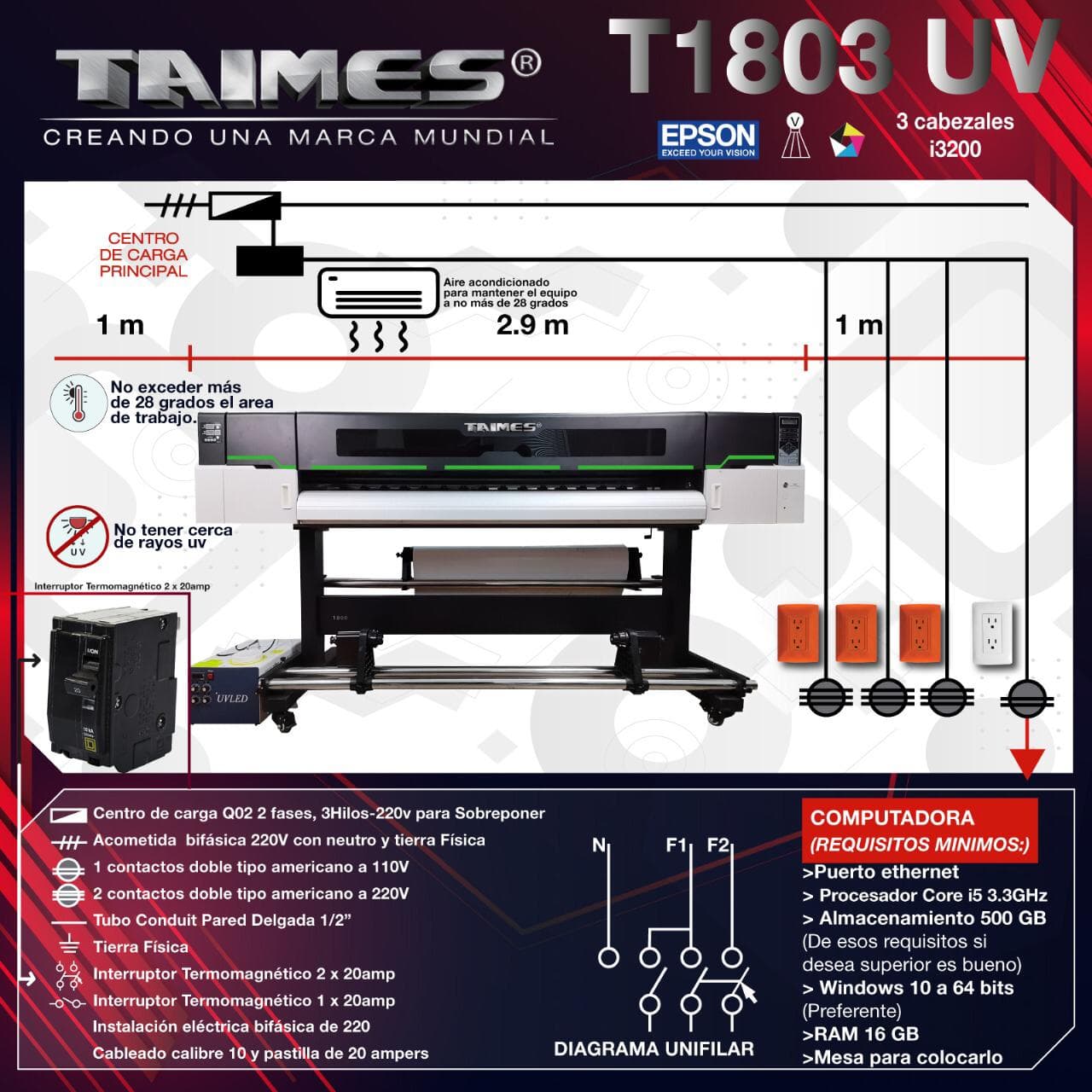 La TAIMES T1803 UV combina tecnología avanzada Epson i3200-U1 con impresión UV de alta precisión para materiales flexibles. Con tres cabezales y un ancho de impresión de 1.80 m, permite trabajar con tintas CMYK, blanco y barniz, ofreciendo acabados brillantes y duraderos. Ideal para aplicaciones en lona, vinil, PET, canvas y más, garantiza estabilidad, velocidad y calidad constante gracias a su sistema de rodillos, servo motores y rieles de alta precisión.